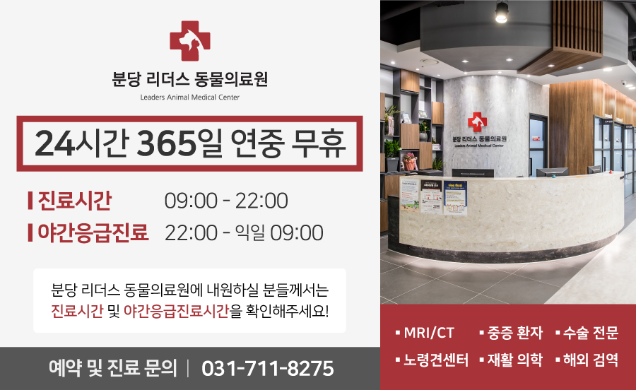 24시 분당 리더스 동물의료원입니다.