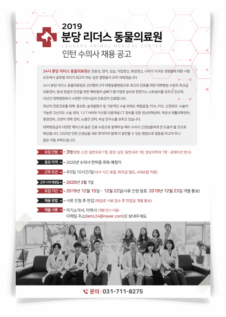 [24시 분당 리더스 동물의료원] 수의사 인턴 모집 공고