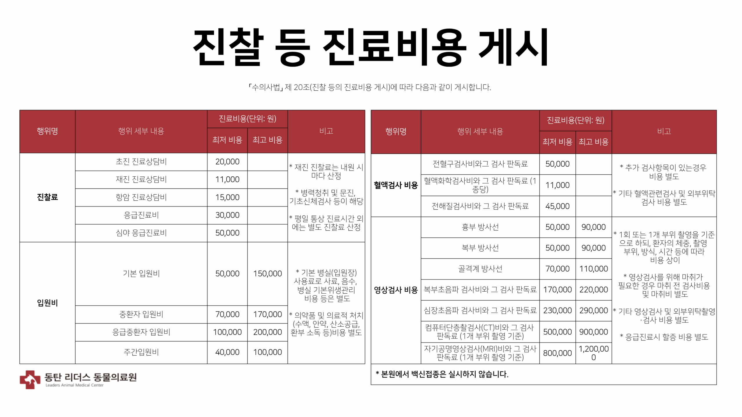 진료비 안내