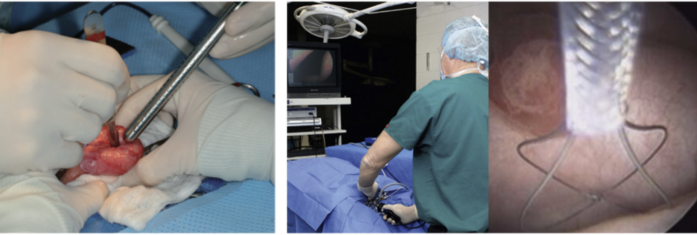 방광 절제(좌) 또는 방광 내시경(우)을 통한 조직 채취 (사진= Manual of Small Animal Soft Tissue Surgery, 2nd ed, Small Animal Endoscopy, 3rd ed)