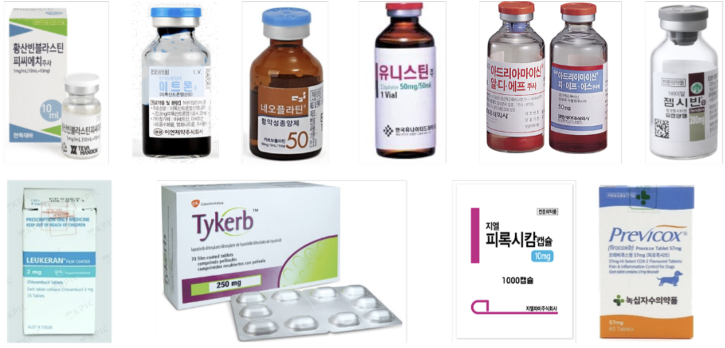 항암화학요법 및 보존 치료에 사용되는 약물들 (사진= 약학정보원, 녹십자수의약품)